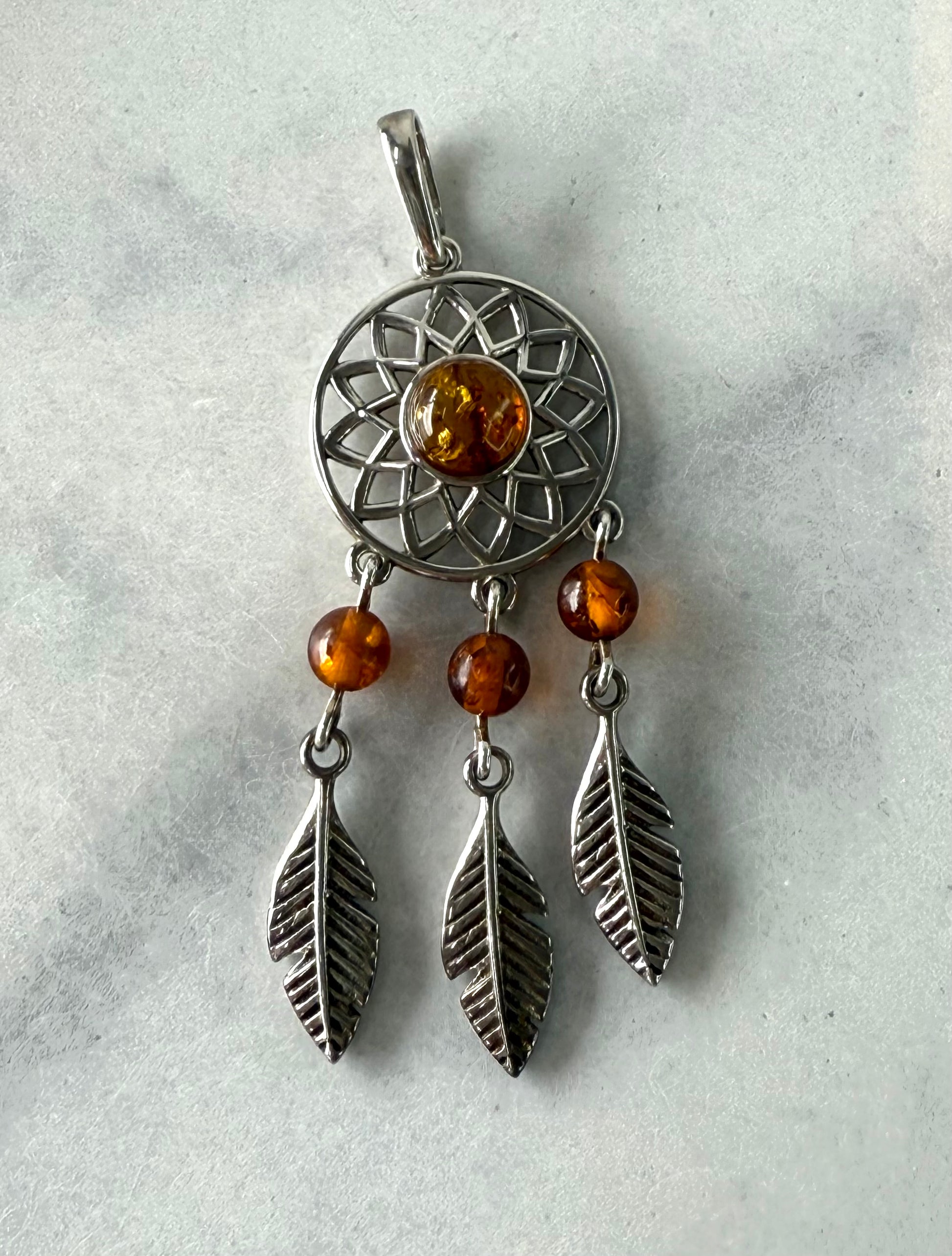 Delicate Amber Dream Catcher Pendant