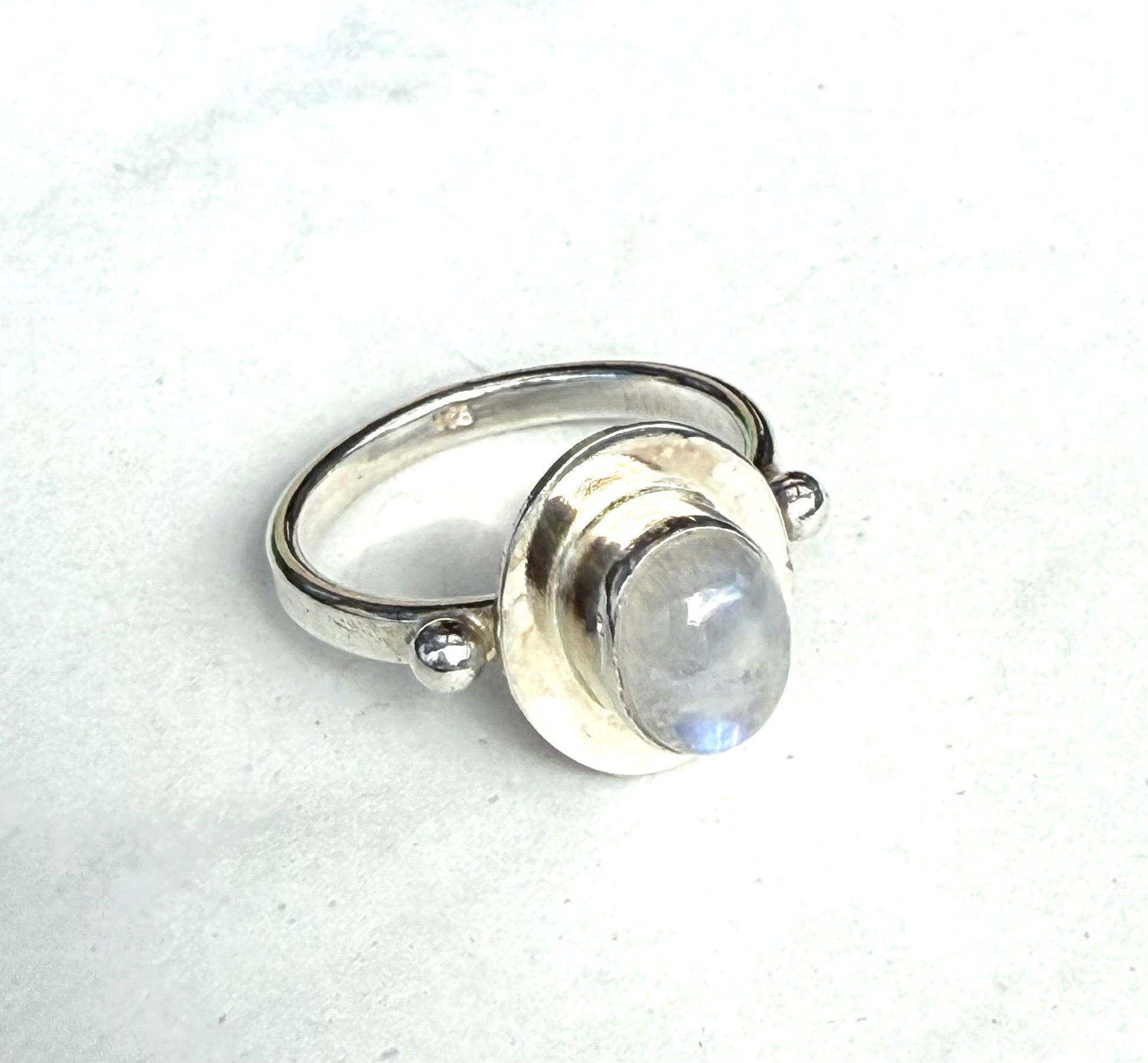 Gorgeous Rainbow Moonstone Ring on Sterling Silver