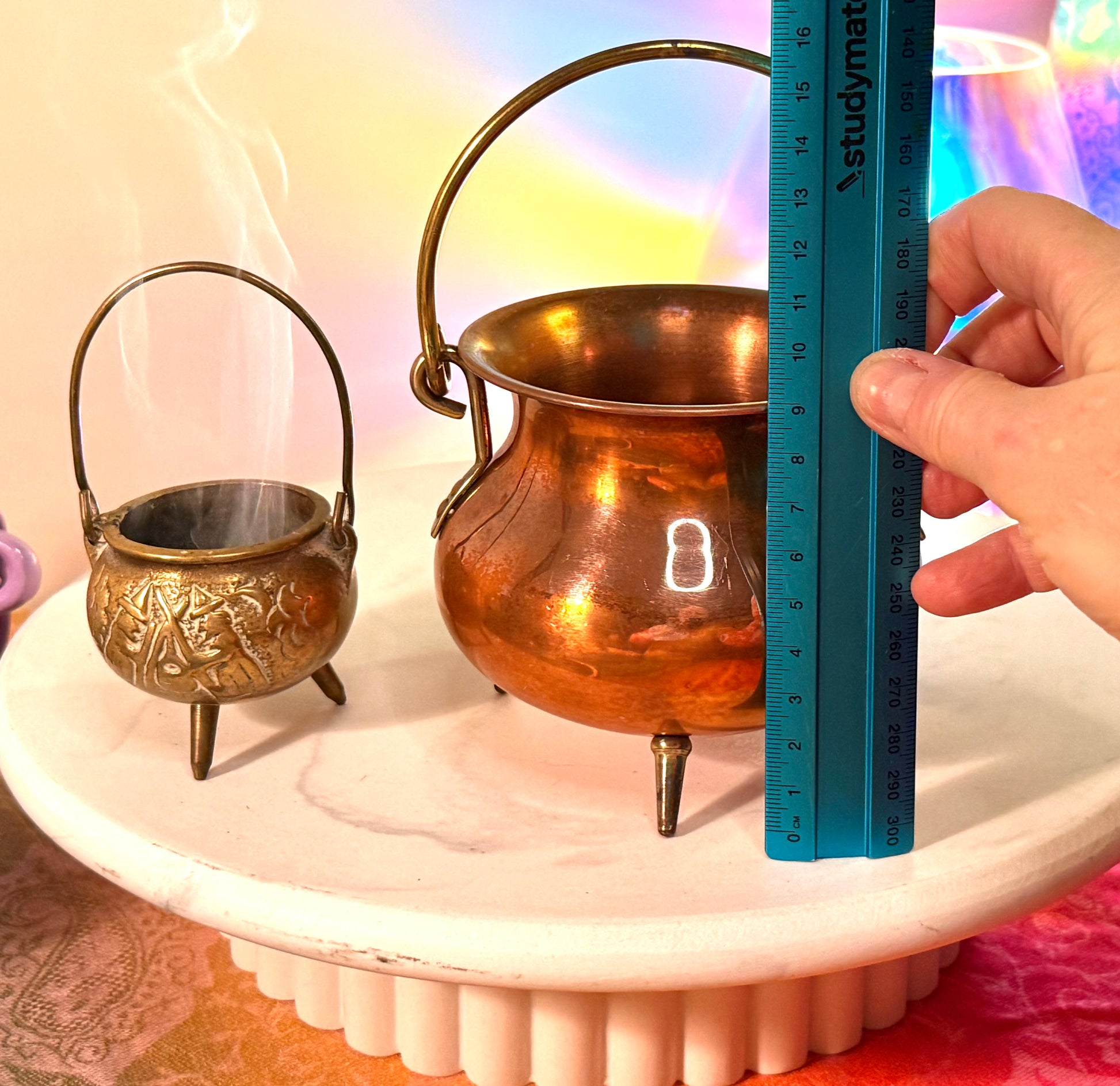 Traditionally used to brew potions, simmer herbs, or serve as a vessel for ritual fire, this cauldron invites you to stir magic into your daily practice. Place it upon your altar as a symbol of transformation, or let it hold offerings, crystals, or sacred herbs. Copper amplifies energy and intention, while iron anchors and protects — making this union of metals a true talisman for the modern witch.